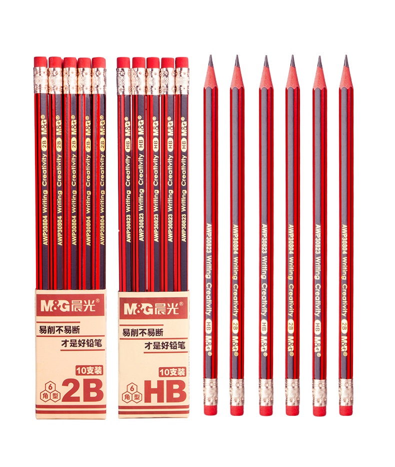 晨光2B六角木杆铅笔红黑抽条AWP30804*10