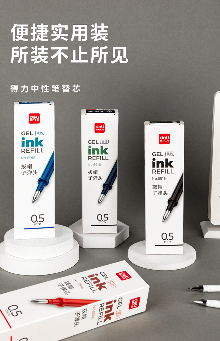 得力6916通用型中性笔替芯0.5mm*20蓝色