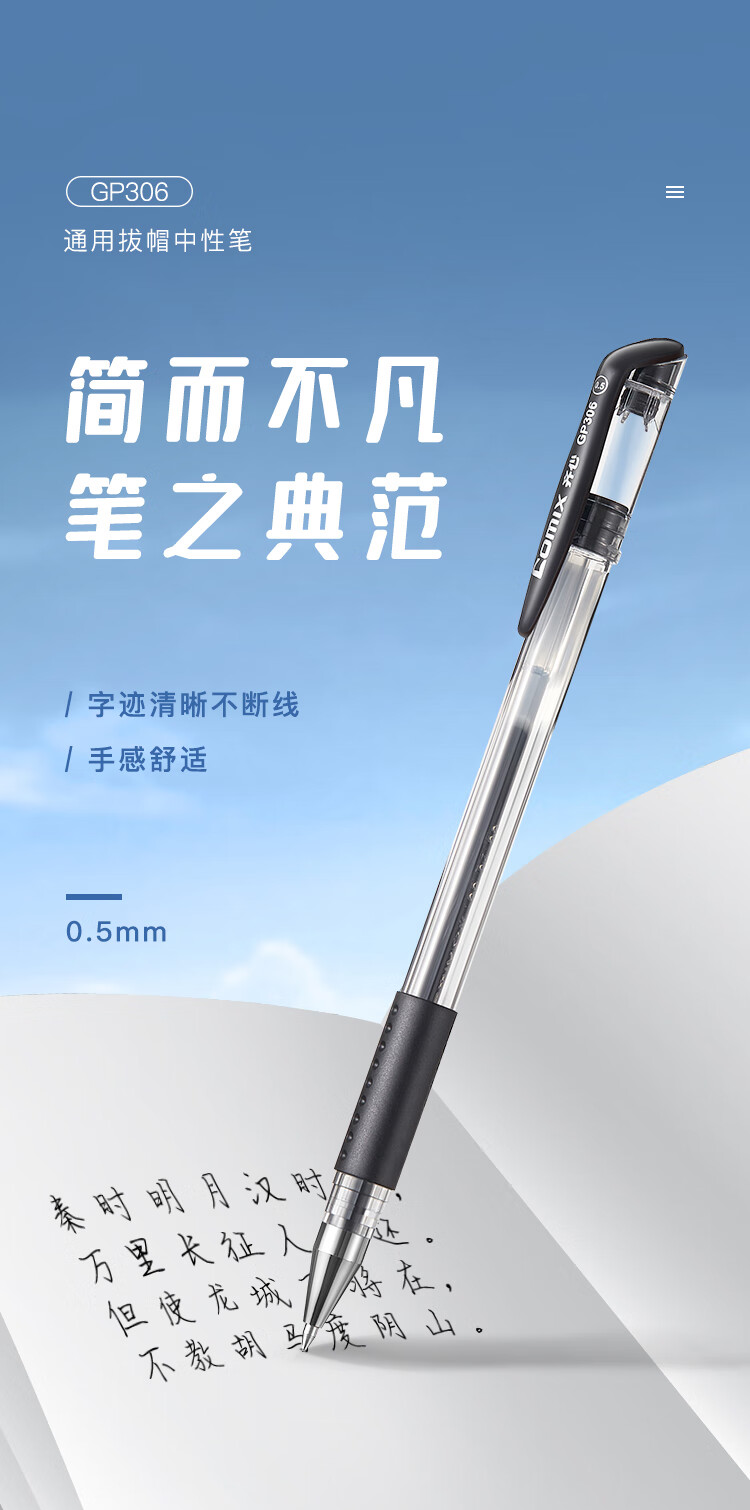 齐心K3511舒适按动中性笔0.5mm蓝*12