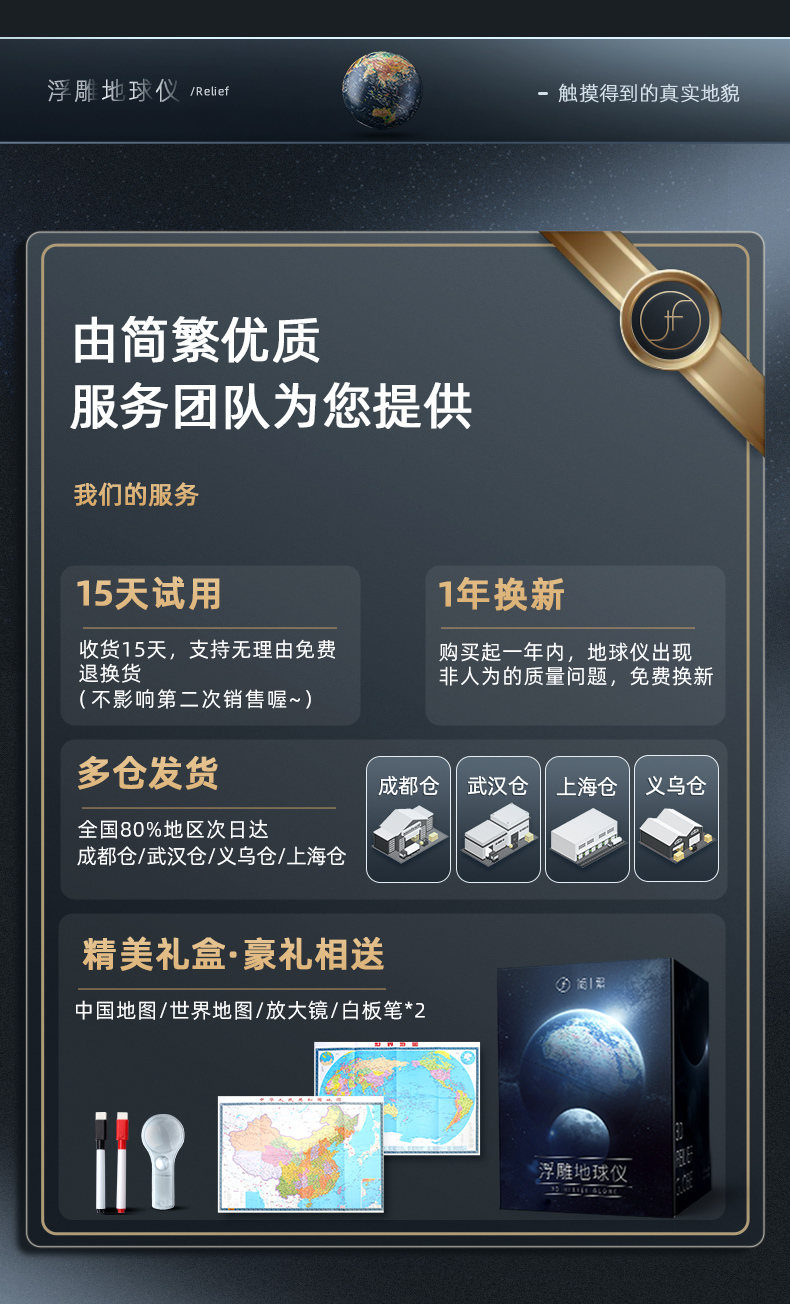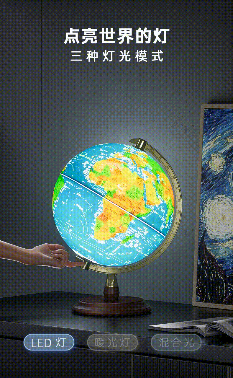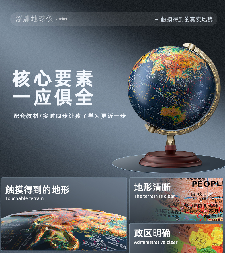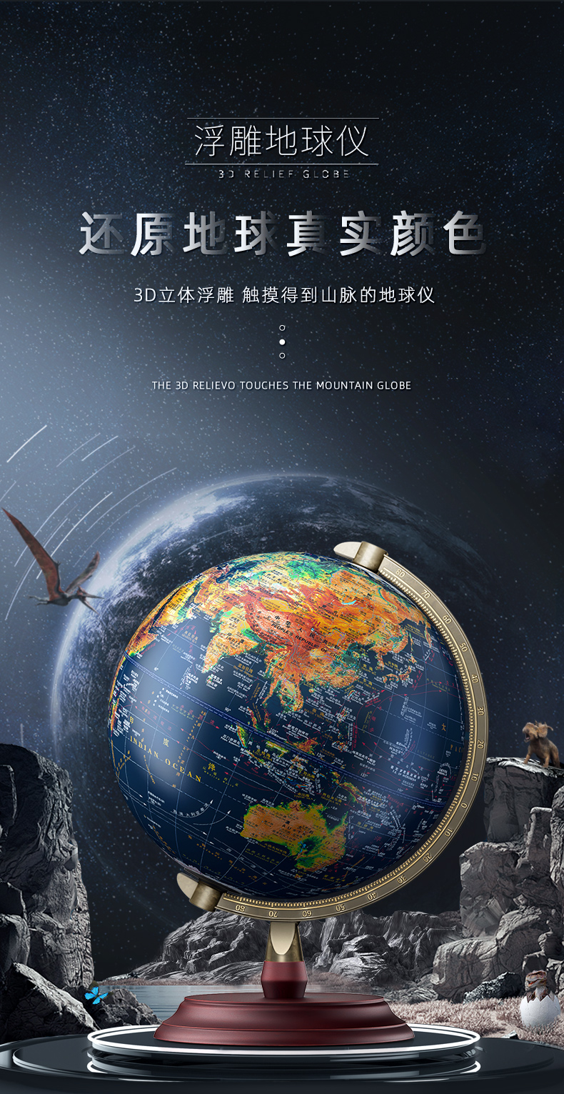 浮雕地球仪3d立体凹凸磁悬浮正版深蓝色20cm常规浮雕360°旋转+AR+充电