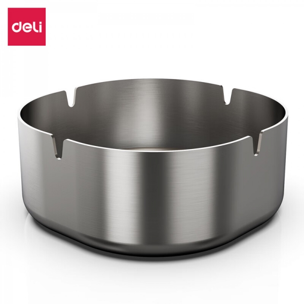 得力LQ172不锈钢本色烟灰缸12cm(大号)