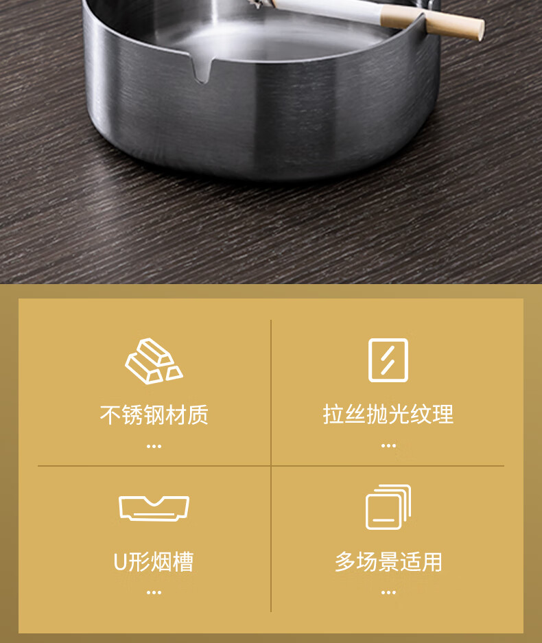 得力LQ170不锈钢本色烟灰缸8cm(小号)